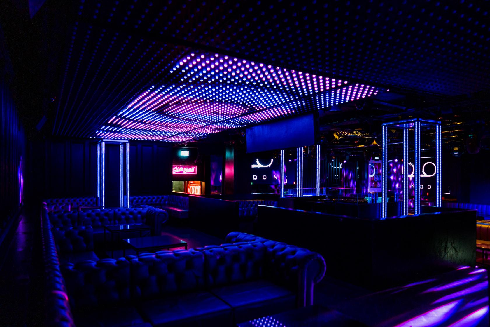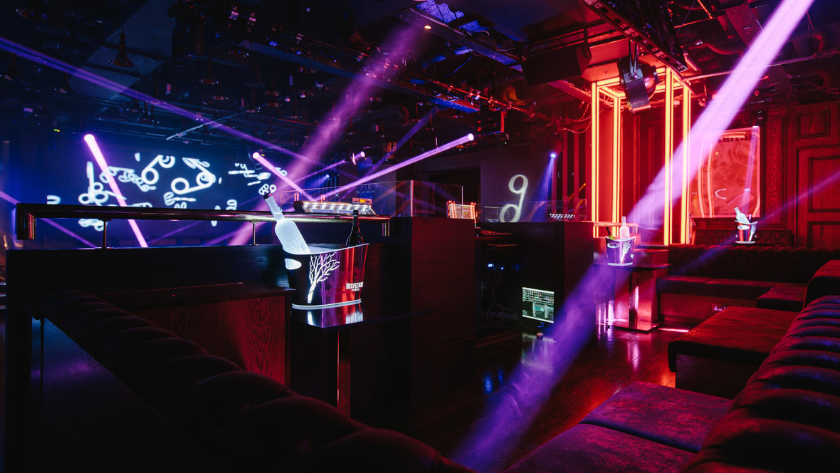 With a capacity for 250 guests, the nightclub features a full-fledged stage for electrifying live performances. The space is divided into two tiers: VIP tables on the upper level and guestlist tables on the lower level. The focal point is the DJ booth, commanding attention, flanked by elevated platforms where skilled go-go dancers captivate the audience. State-of-the-art D&B Technik sound systems guarantee an immersive auditory experience that elevates each beat.